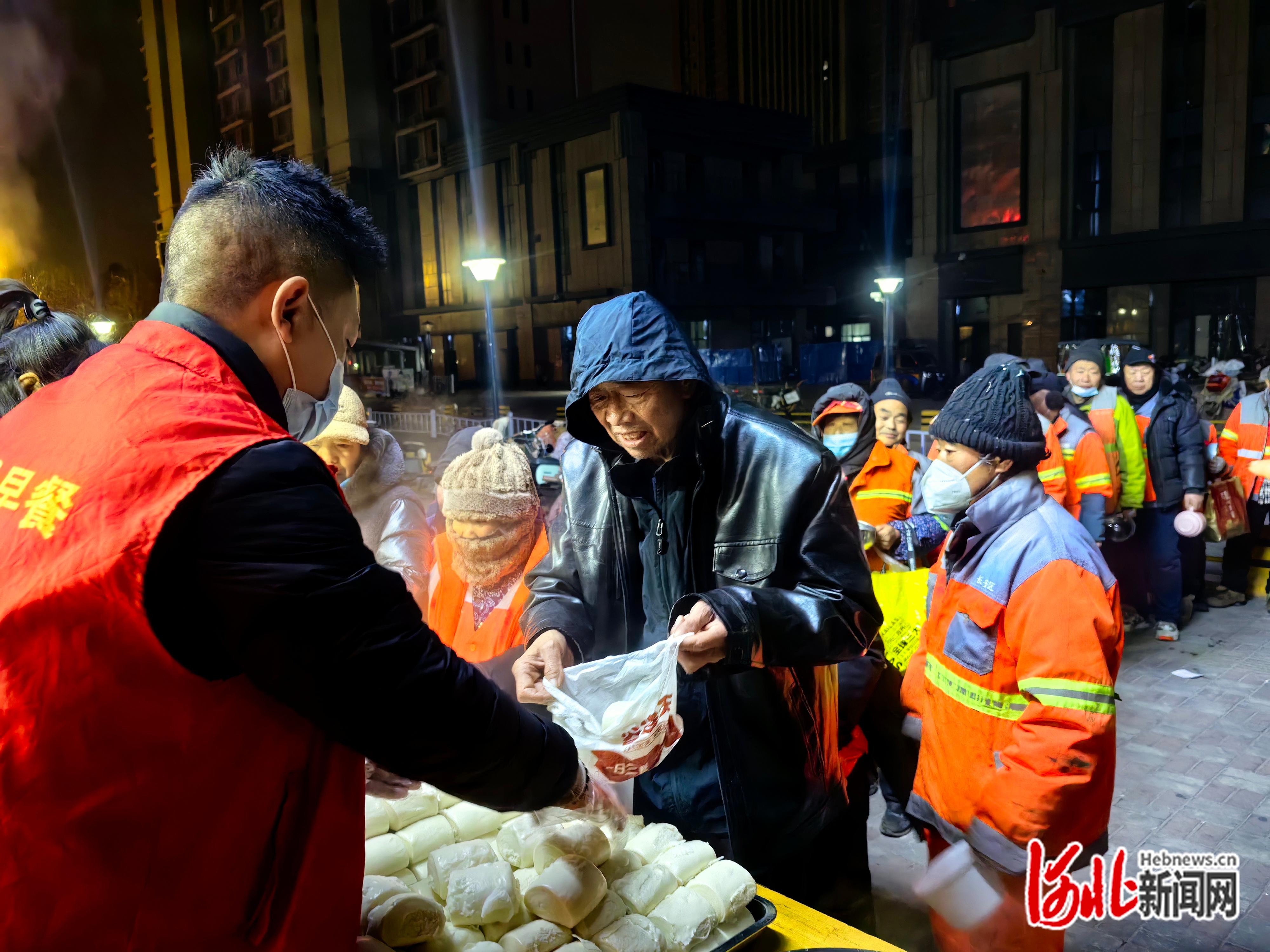 清晨的爱心早餐温暖了环卫工
