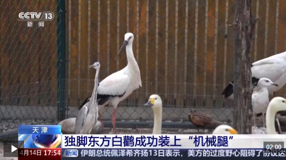 暖心救助!独脚东方白鹳成功装上 “机械腿”